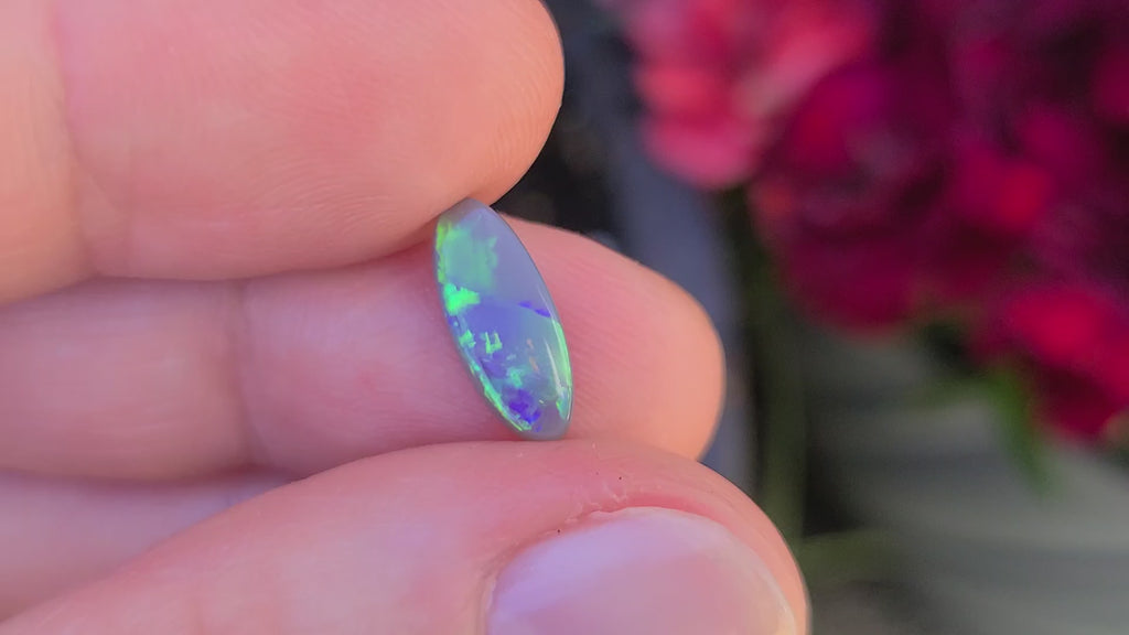 - 1.06ct, 12.34x5.1x2.46mm from Lightning Ridge, Australia.